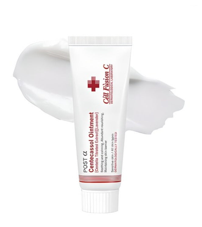 [Cell Fusion C] Post α Centecassol Ointment 40ml- An intensive soothing treatment designed to help repair and protect damaged or sensitive skin. - Formulated with Centella Asiatica-derived ingredients, it helps calm irritation, strengthen the skin barrier, and support skin recovery.- The rich ointment texture forms a protective moisture barrier, helping...