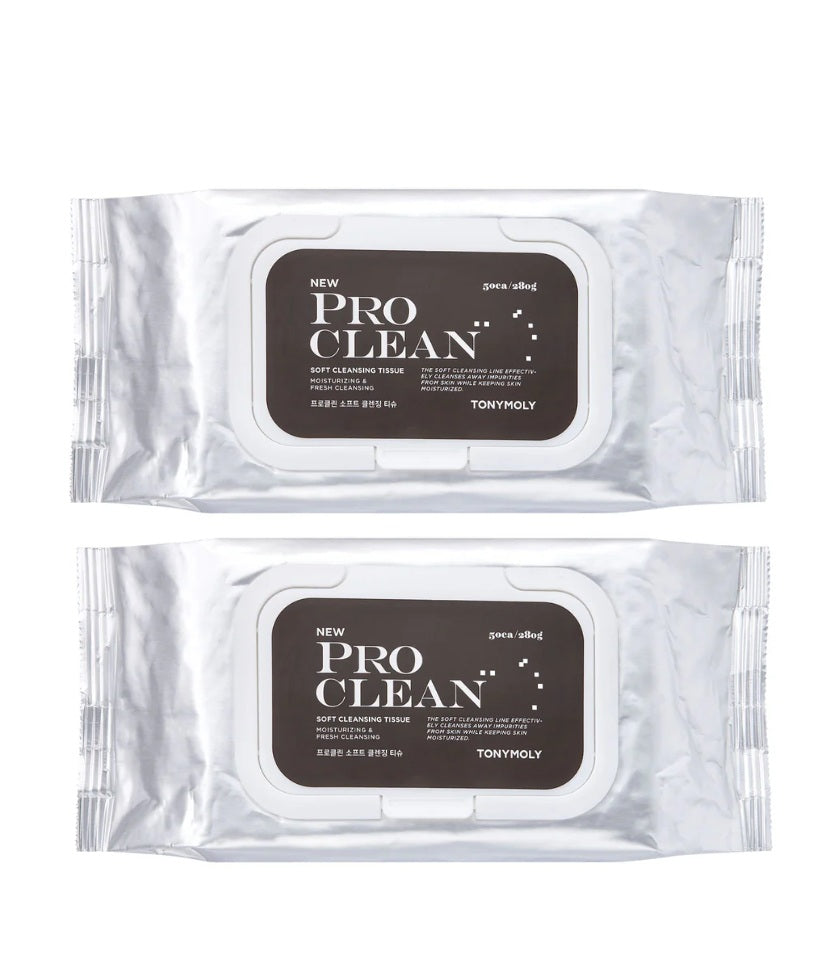 [TONYMOLY] 1+1 Pro Clean Soft Cleansing Tissues 50 SheetsA soft, pre-moistened wipes effectively cleanse the skin without irritation or dryness, leaving it fresh, hydrated, and smooth.How to UseGently wipe face and eyes with a tissue until makeup and impurities are removed. No rinsing needed. Use as needed throughout the day.