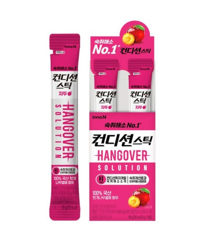 [inno.N] Condition Hangover Relief Stick #Plum Flavor 10ea - One of the best-selling hangover relief products in Korea.- New &  Upgraded gel stick type that is easy to swallow and has an excellent absorption rate.- Refreshing Plum flavor. Volume: 18g x 10 SticksDirections and cautions- 20 minutes before drinking, take 1 stick with...