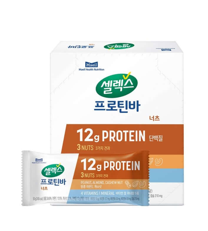 [Selex] Protein Bar Nuts 6P-Delicious protein nuts bar from Selex. - Contains 12g of protein, 3 types of nuts (almond, peanut, cashew nut), 4 vitamins and 1 mineral. - Great choice for healthy diet snacks or meal replacement.  Volumes: 50g x 6EA  / 245kcal (50g)1) Check the expiration date before use and...