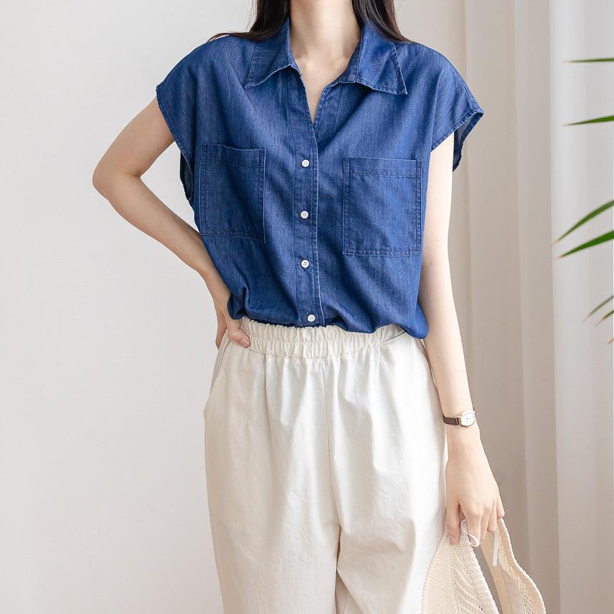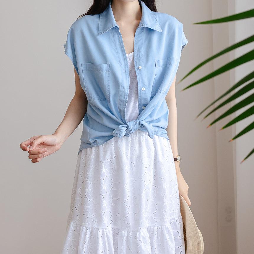 Sleeveless Casual Denim Shirt