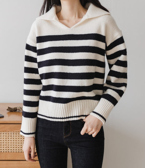 Stripe Collar Knit Sweater